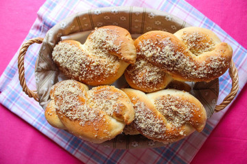 5. Întindem fiecare bucată, rulând-o cu palmele de masă. O răsucim cât să ne iasă un 8.